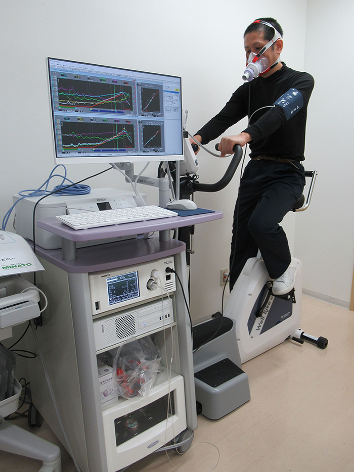呼気ガス分析を併用して行う運動負荷試験のことで、全身の健康度、すなわち運動耐容能から患者さまの予後を評価することが出来る検査のことです。